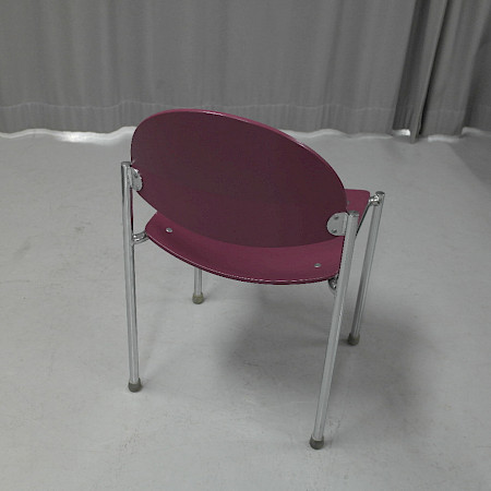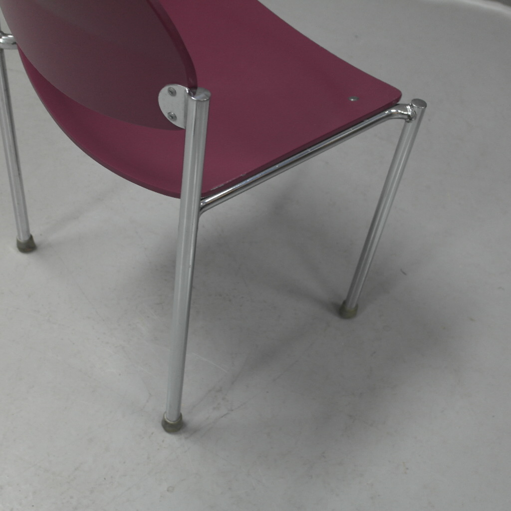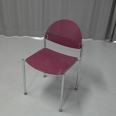Martelan asiakastuoleja, väri violetti, jalkarunko kromattu teräs, istuin sekä selkäosa puuta, pinottava.