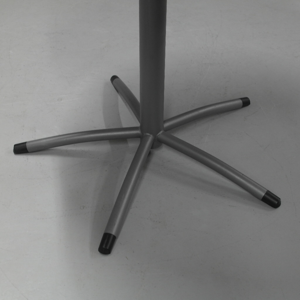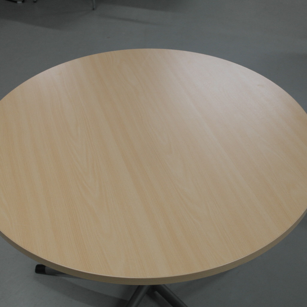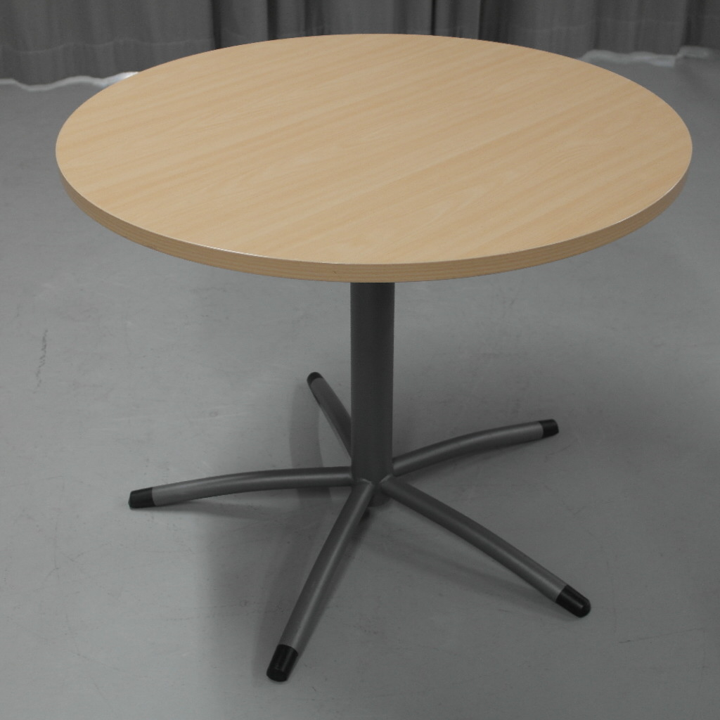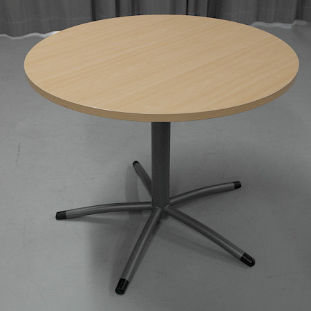 Hienokuntoinen pyöreäpöytä, kansi pyökki, jalkaosa vaaleanharmaa metalli.