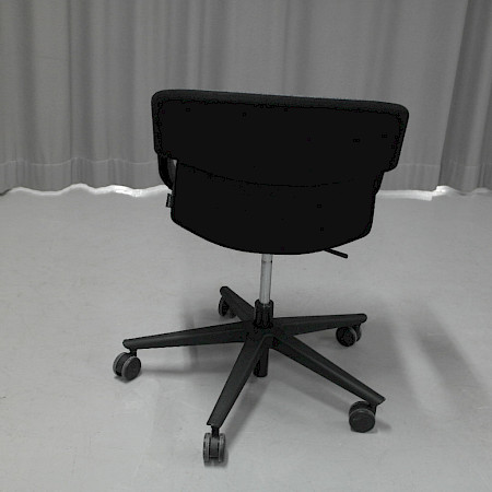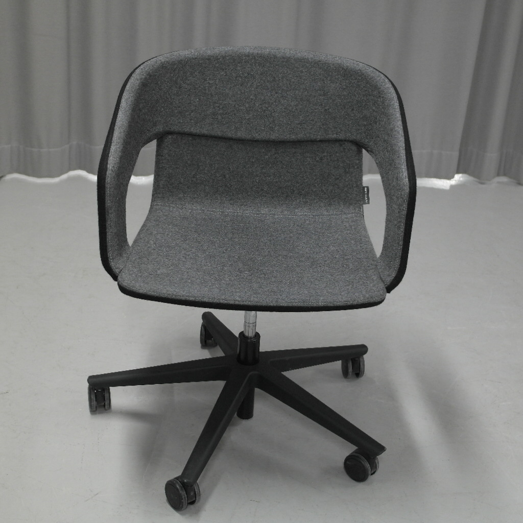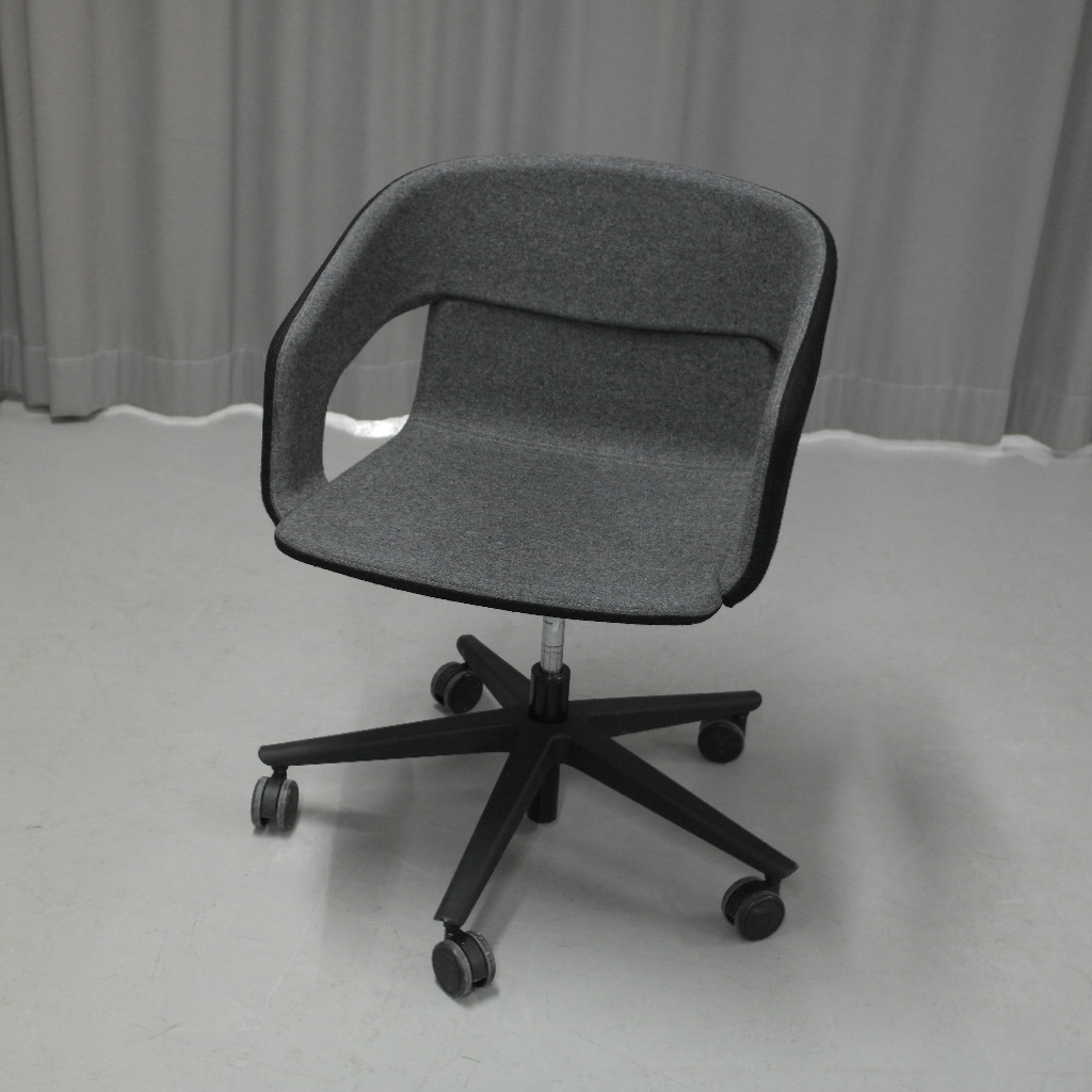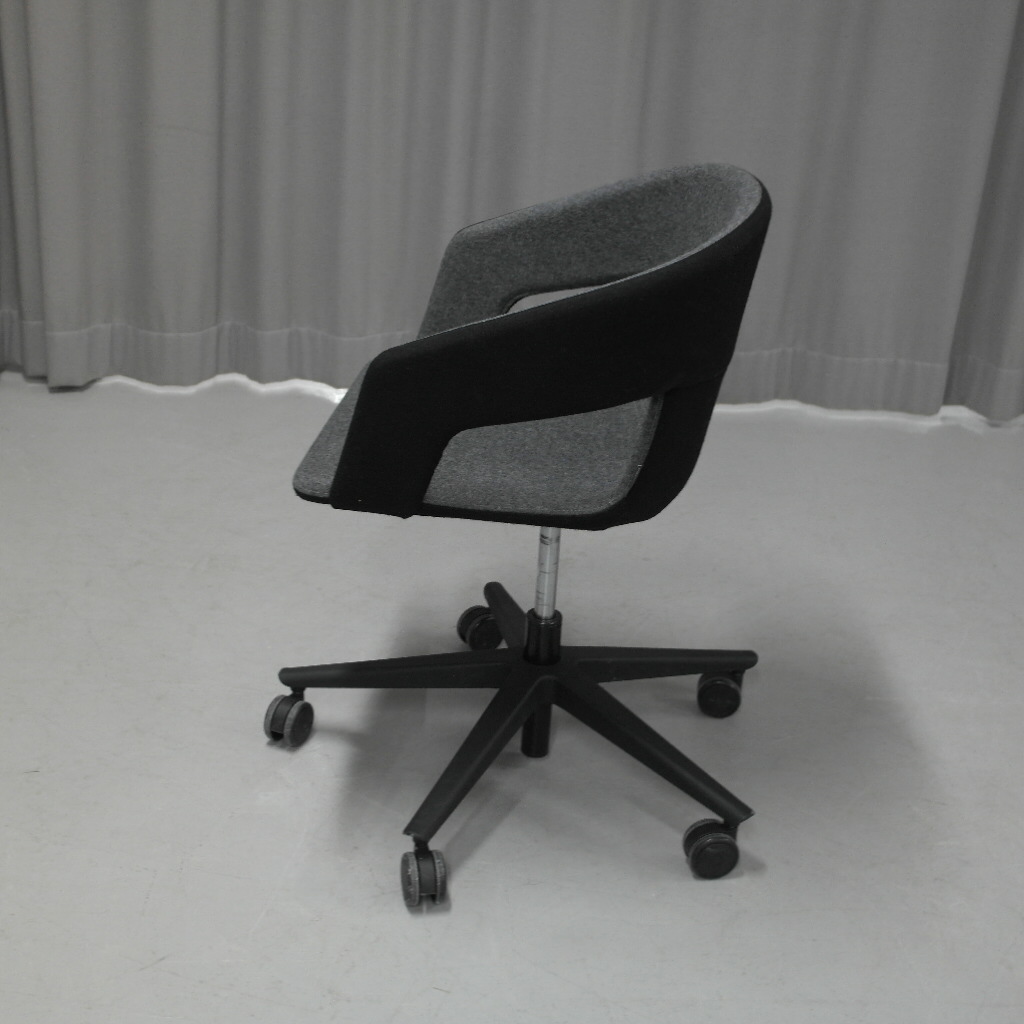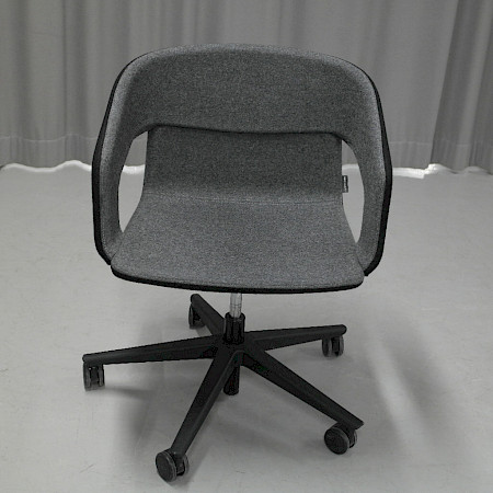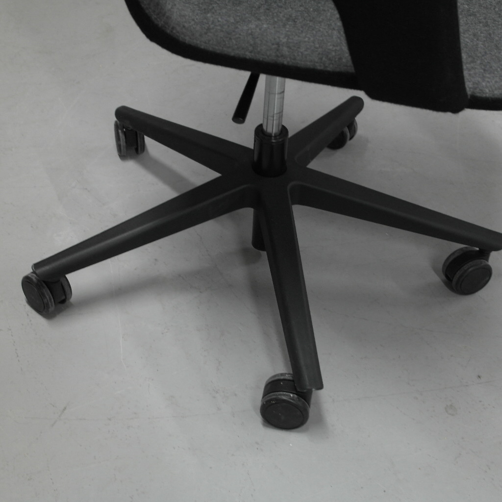 Hienokuntoisia Narbutaksen neuvottelutuoleja, pyörivä tuoli, istuin korkeussäädettävissä, ympäri verhoiltu, tuolin sisäpuoli harmaa, ulkopuoli musta, ristikko muovia väri musta.